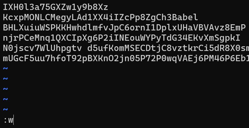 - Vim will save the file, and you will see a confirmation message at the bottom of the screen with the file name and the number of lines and characters written. After you execute this command, you will remain inside the editor and this allows you to continue your work.