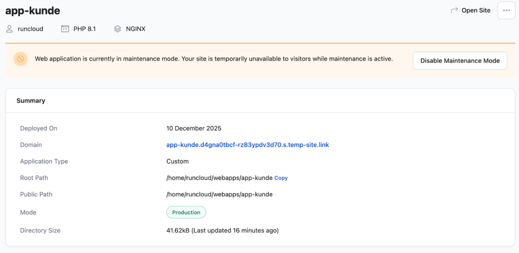 Learn more: How to Enable Maintenance Mode for a Web Application