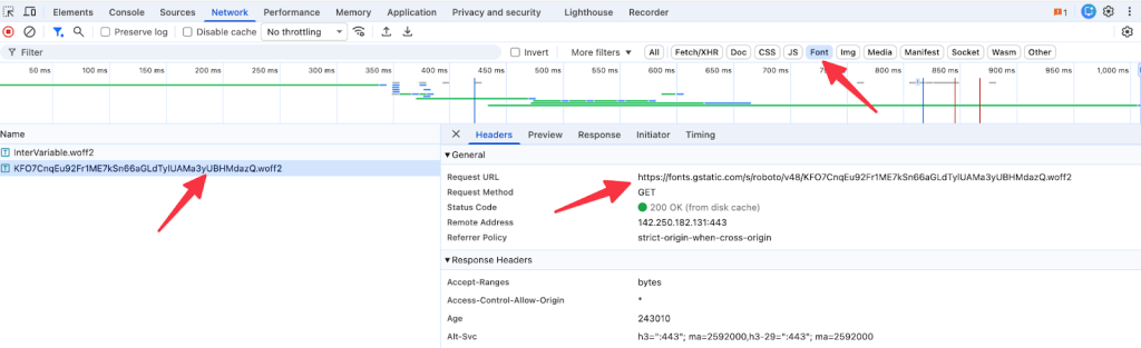 Step 2: Identify the Exact Font File Used Above the Fold in DevTools