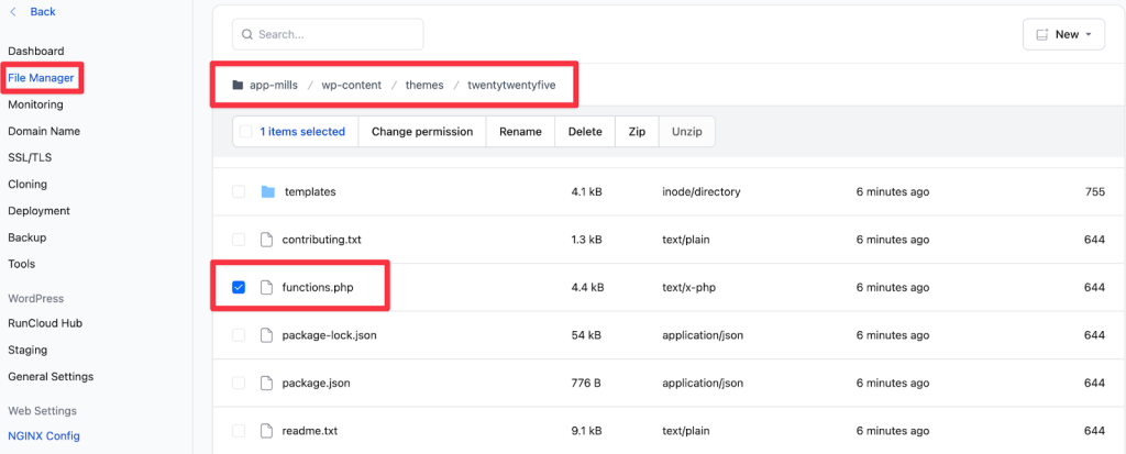 - Log in to your RunCloud dashboard and open the File Manager.